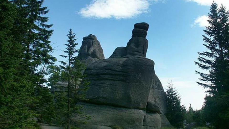 Karkonosze są zbudowane w dużej mierze z granitu, jaki występuje tu w kilku odmianach. Procesy erozyjne kształtują specyficzne spękania - ostre oraz urwiste, uformowały się też tutaj specyficzne dla tego masywu - skałki - malownicze, niezakryte glebą ani roślinnością formacje skalne. Jest ich ponad 150 grup, poniektóre dość duże - przykładowo Pielgrzymy, inne skromniejsze, mają one często nazwy nawiązujące do ich kształtu - Owcze Skały, Trzy Świnki, Ptasie Gniazda, Paciorki, Końskie Łby, Bażynowe Skały, Słonecznik, Pielgrzymy.