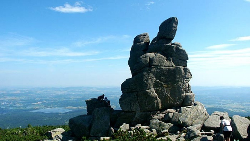 Najbardziej znanym szczytem jest naturalnie Śnieżka (1602 m n.p.m.) - najwyższy wierzchołek całego pasma Sudetów przewyższający okolicę o 200 m gwarantuje przepiękne krajobrazy - to co można z niej zobaczyć zależy tylko od widoczności. Dominuje tu niesłychanie surowy, zbliżony do alpejskiego klimat - średnia temperatura w roku waha się wokół zera, natomiast pokrywa śnieżna niejednokrotnie zalega od października do maja, opady śniegu zdarzają się również w lecie. Znajduje się tu stacja meteorologiczna, nieprzerwanie prowadzi się obserwacje od 1880 r. W dole, u podnóża Śnieżki leży Karpacz - największe miasto turystyczne w okolicy.